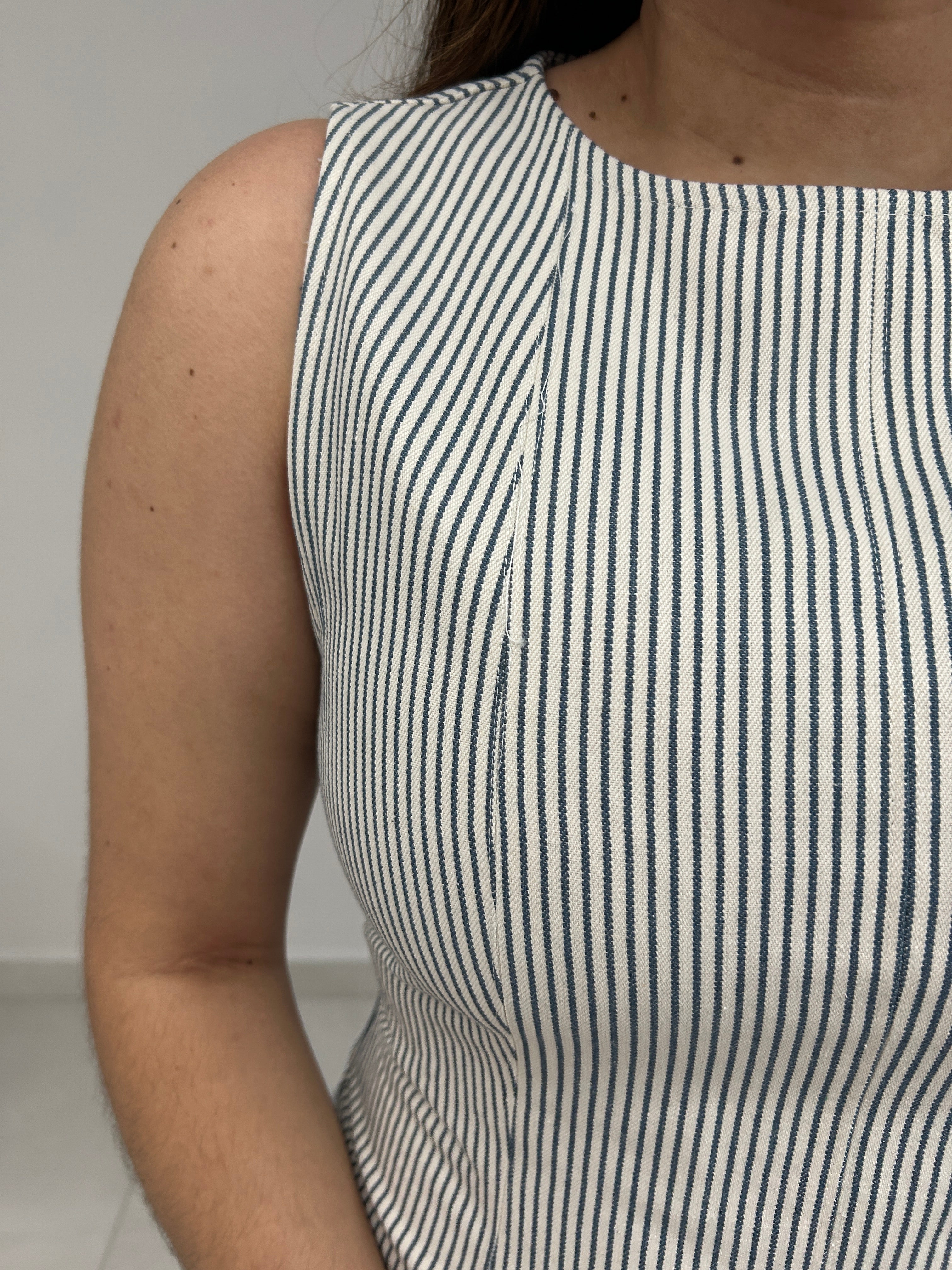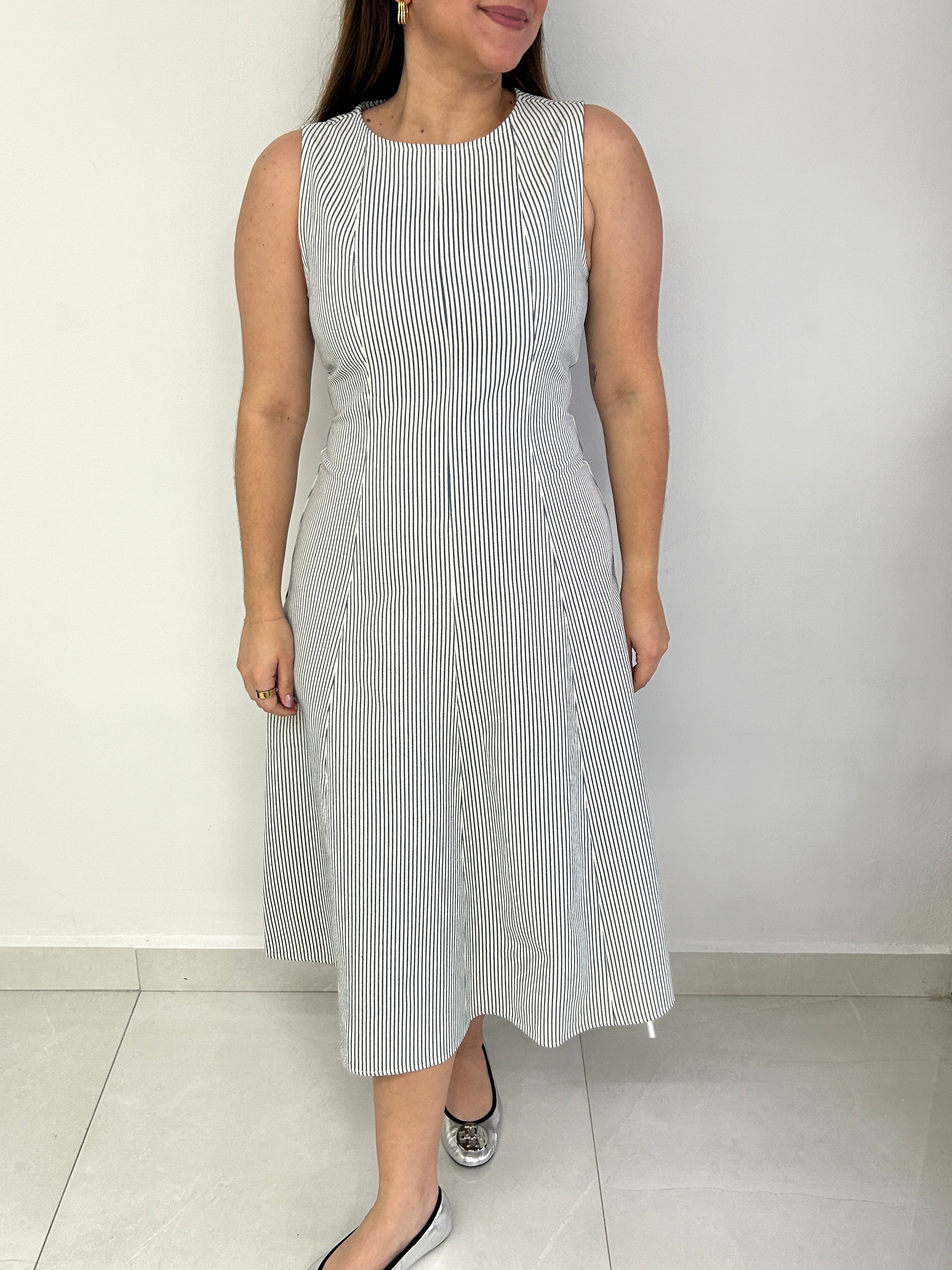 Your favorite striped sleeveless dress for spring! The perfect A line silhouette and midi dress.